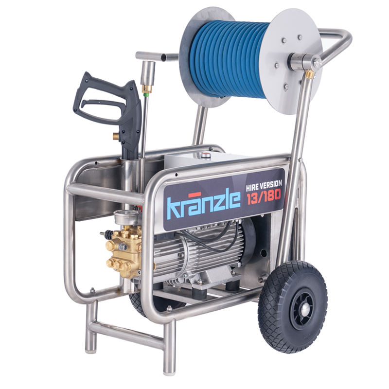 The wheel kit for the hire version or the contractor allows these machines to be mobile mounted on wheels. It also allows for a stainless steel hose reel to be mounted onto the frame to allow for better organizing of the high pressure cleaner equipment and accessories.