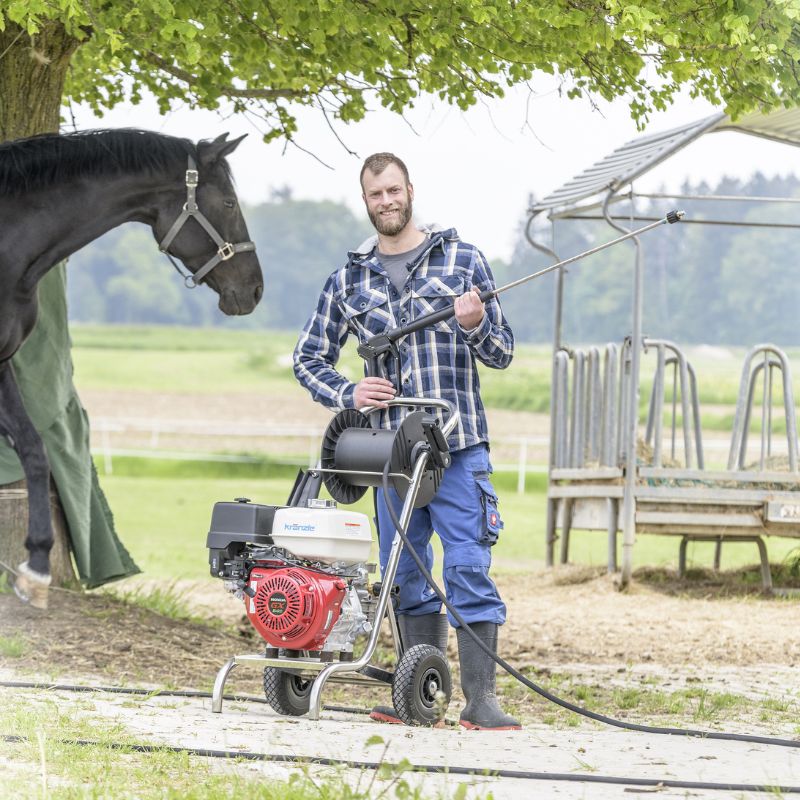 The Kränzle B16/250- Honda engine petrol pressure washer with its stainless steel chassis is a mobile friendly option, ideal for industrial cleaning where electrical power is not supplied. Equipped with a 2:1 reduction gearbox, this feature makes the Kränzle pump run at a slower speed than other brands and therefore, wear on the seal and repair costs are reduced.