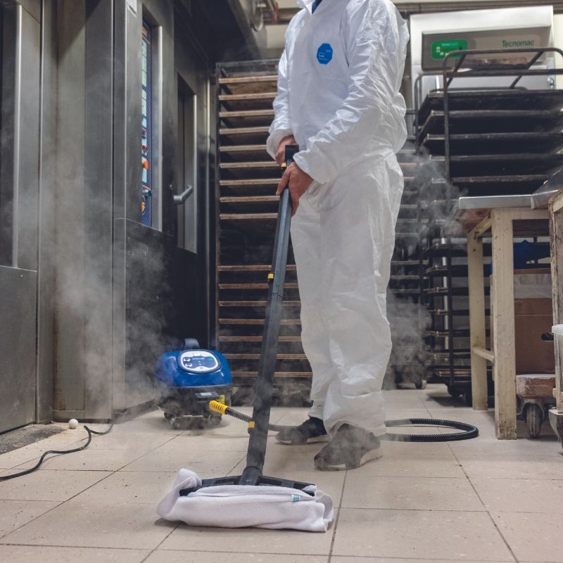 The Tecnovap Evo Blu Water is an industrial steam cleaner for the cleaning of more detailed application areas, also acting as a bacterial disinfectant. It is a single-phase steam cleaner for use in the professional sector with unlimited steam autonomy thanks to the automatic refilling system with an internal water tank. Possibility to inject hot water with hot steam generated. The steam cleaner is installed with an electric front control panel with commands for a timer, thermometer and a pressure gauge of the steam being generated. The display will also guide the user on the maintenance of the steam cleaner.